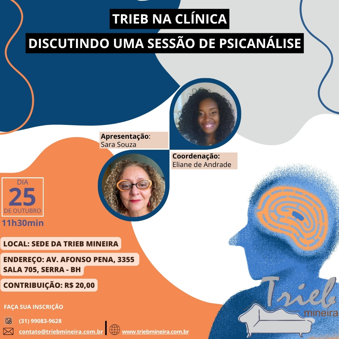 Apresentação: Sara Souza, psicóloga. Coordenação: Eliane de Andrade - psicanalista, membro efetivo e didata da SPRJ. Dia 25/10, sábado, 11:30h, na sede da Trieb Mineira.